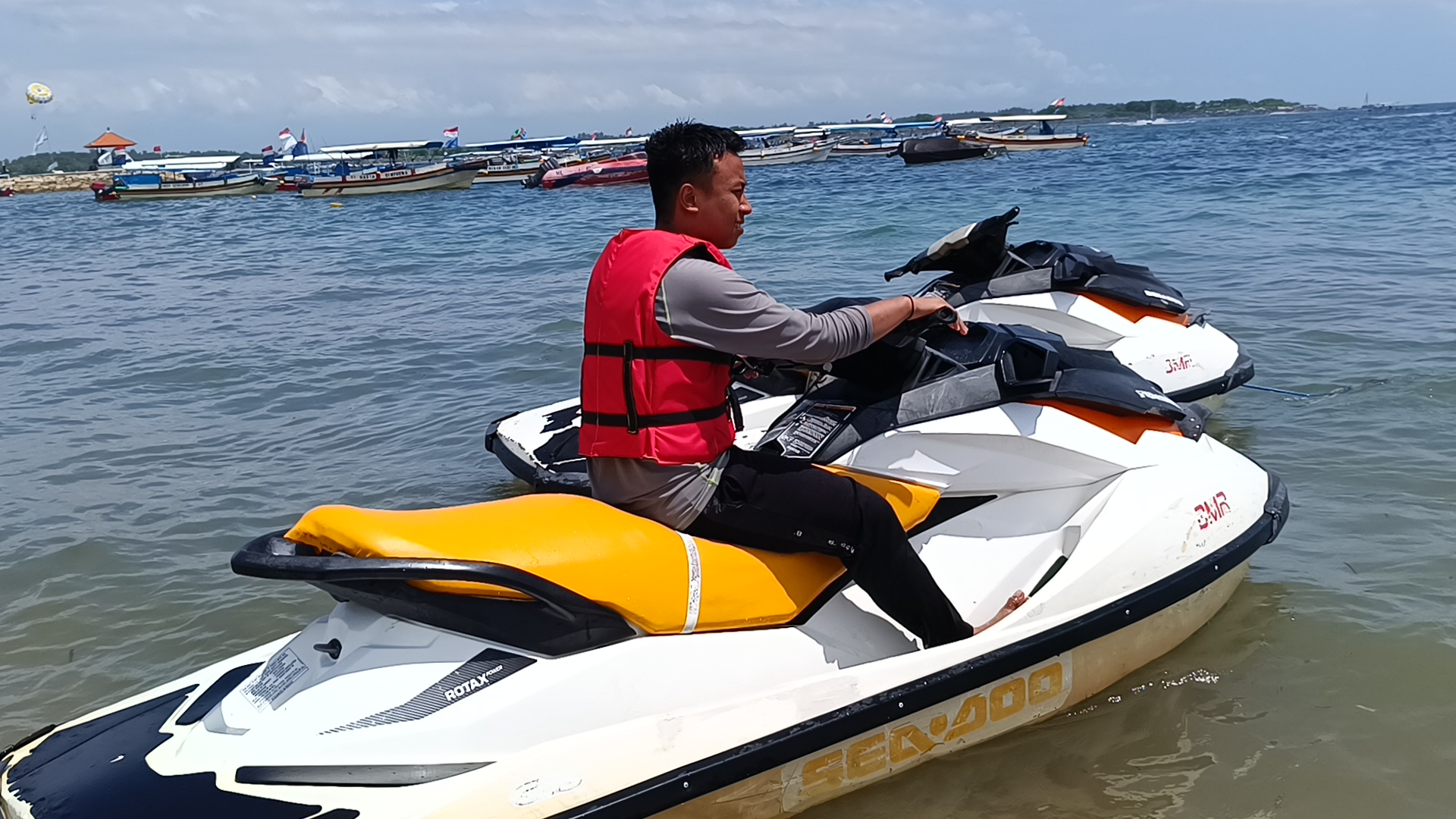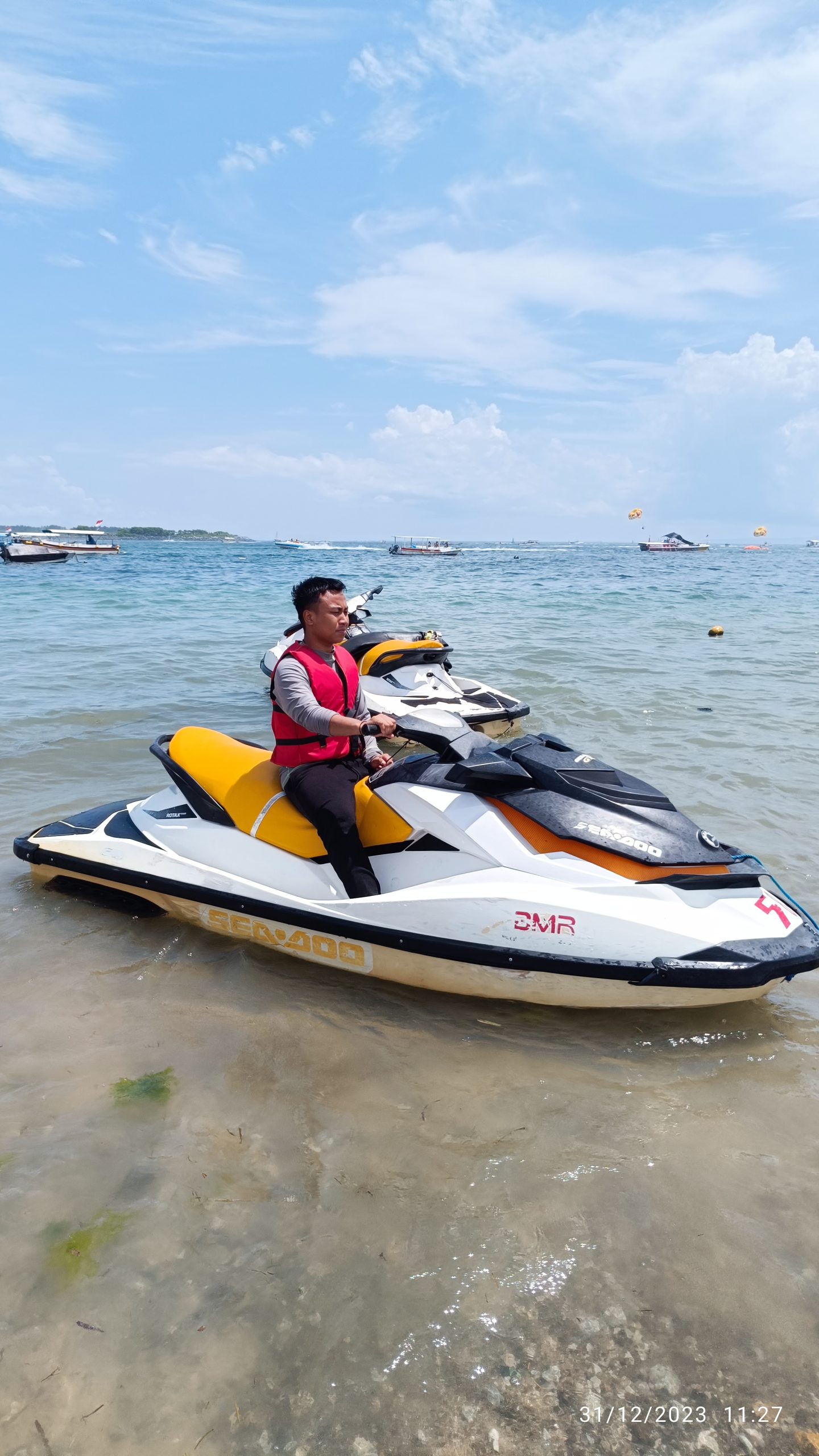 Keesokan paginya, 1 Januari 2024, energi kami kembali penuh. Kali ini, kami bertiga, dengan formasi lengkap, siap untuk berpetualang. Tujuan kami adalah pusat olahraga air paling terkenal di Bali: Tanjung Benoa.